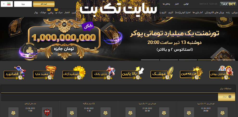 سایت تک بت یکی از شناخته شده ترین پلتفرم های شرط بندی آنلاین است که با ارائه مجموعه گسترده ای از بازی های کازینویی، پیش بینی ورزشی و خدمات متنوع دیگر توانسته محبوبیت زیادی در میان کاربران فارسی زبان به دست آورد. طراحی ساده، ساختار حرفه ای و محیط کاربر پسند از عواملی است که موجب افزایش رضایت بازیکنان در این سایت شده است.