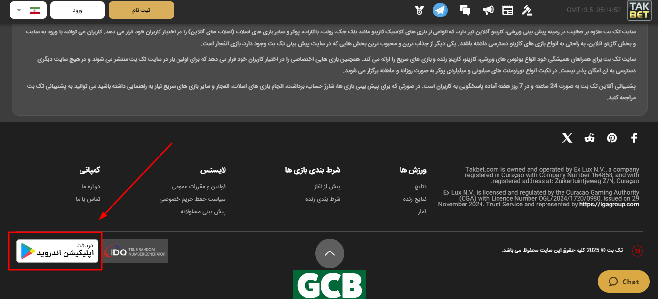 اپلیکیشن اندروید تک بت Takbet app لینک مستقیم