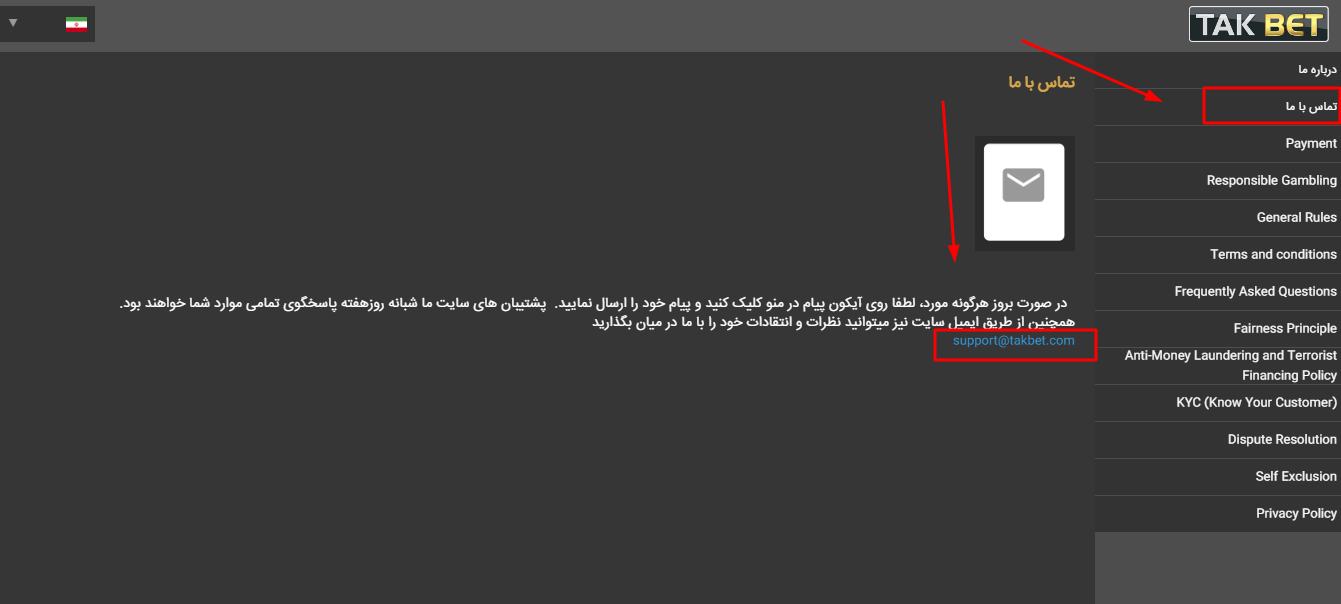 پشتیبانی حرفه ای یکی از مهم ترین بخش های سایت Takbet است که با هدف افزایش رضایت کاربران به صورت دائمی فعالیت می کند. تیم پشتیبانی از طریق چت زنده، ایمیل و فرم تماس با ما در تمام ساعات شبانه روز پاسخگوی کاربران است.